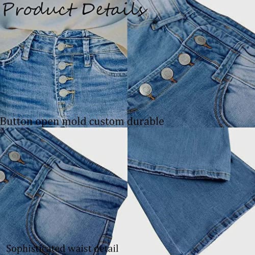 90s Vintage Button Fly High Waist Flare Leg Jeans,Women's Classic Skinny Stretch Blue Denim Pants,Fashion All-Match. 6