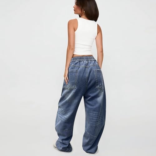 HOT ! Womens Casual Summer Barrel Jeans for Women Trendy Mid Rise Barrel Pants Loose Boyfriend Jeans