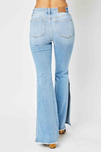 Judy Blue Women's Mid Rise Raw Hem Slit Flare Jeans 4