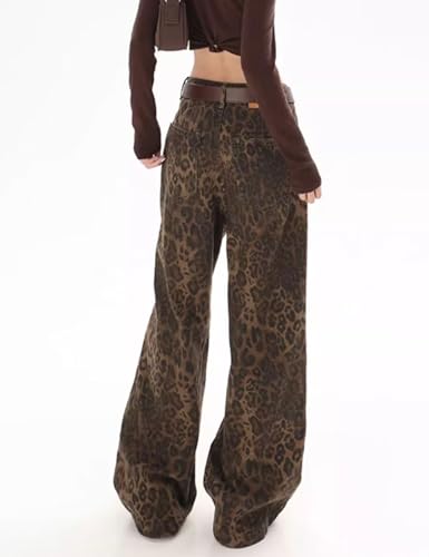 HOT ! Womens Y2k Jeans Leopard Print Jeans Baggy Jeans Harajuku Streetwear Pants Straight Leg Grunge Pants