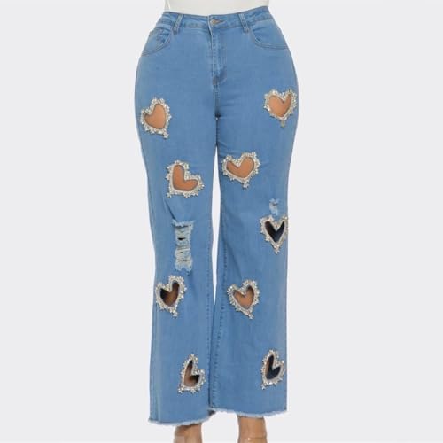 • [Material]: Women's beaded heart jeans are made of denim, soft and light, full length, loose, wear-resistant, comfortable, and just the right amount of stretch