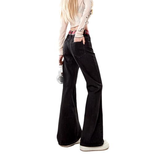 • Features: These women's high waisted denim pants are designed with a flared leg pattern, plaid red and black color splicing design, and zipper leg allows the pants to be worn in a different way. Wear fashionable, casual and comfortable at the same time.