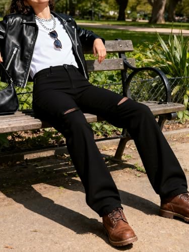 HOT ! Women's High-Waisted Ripped Wide-Leg Jeans with Stretch - Curvy-Friendly & Comfortable