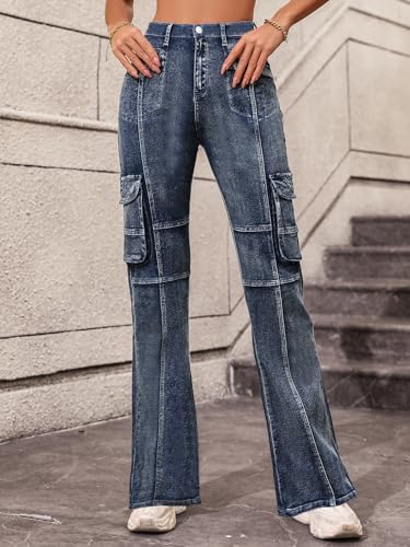 More information about Cargo Jeans for Women High Waisted Curvy Slim Fit Denim Pants Vintage Mom Stretchy Skinny Flare Jeans Streetwear