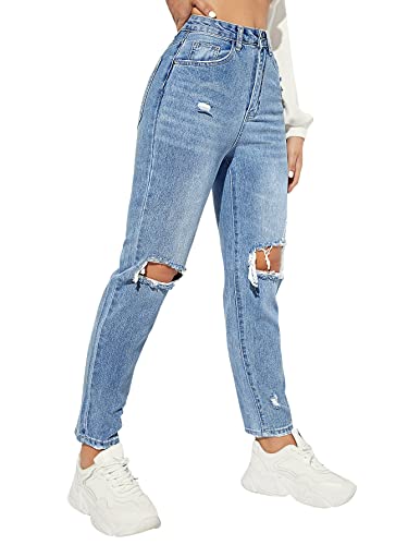 More information about SweatyRocks Women's Ripped Boyfriend Jeans Distressed High Waist Silm Fit Denim Pants