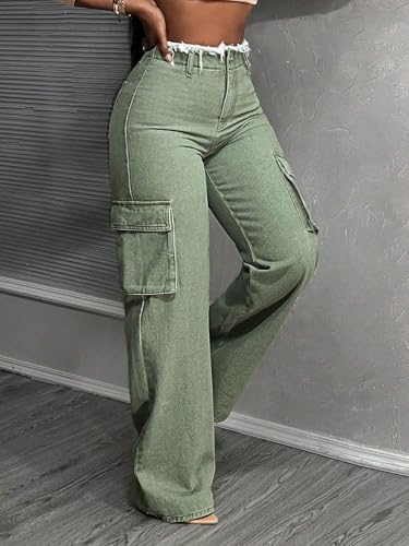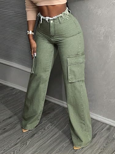 HOT ! Women's Mid-Rise Jean Straight Leg Denim Jeans With And Frayed Hem Pockets