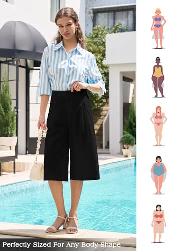 HOT ! Willit Women's Linen Capri Pants Wide Leg Dress Casual Summer Pleated Capri High Waisted with Pockets 16"