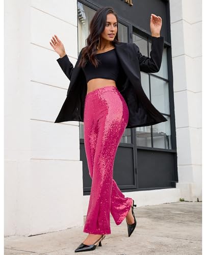 HOT ! GRAPENT Sequin Pants for Women Flare High Waisted Pull On Elastic Waist Party Club Night Out Dance Stretch Sparkly Pants