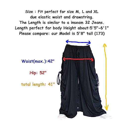 • One Size: fits perfect for Size M - L - XL due elastic waist and drawstring, the length is similar to a inseam 32 Jeans. Please compare about the length: The model at the pictures is 5' 8" tall