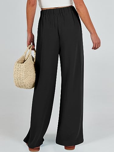 HOT ! Caracilia Women Wide Leg Palazzo Pants Summer High Waist Flowy Casual Trousers Loose Lounge Beach Travel Vacation Clothes