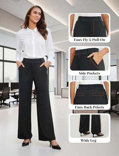 More information about FireSwan Women's Wide Leg Dress Pants High Waisted Stretchy Work Trousers Business Casual Office Pull on Slacks with Pockets