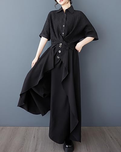 More information about ellazhu Women's Pants Wide Leg Pocket High Waist Button Pocket Asymmetrical Irregular Hem GZ468
