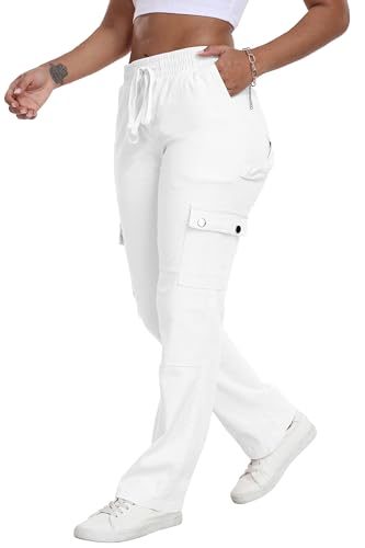 More information about HVEPUO Womens Pants Casual Straight Leg Cargo Pants High Waisted Jeans for Women with Pockets