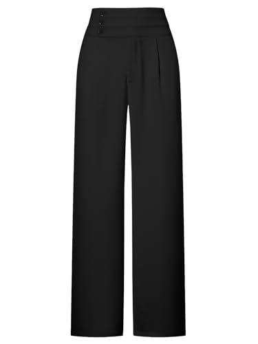 HOT ! Betusline Women's High Waist Dress Pants Business Side Button Work Wide Leg Pants Straight Leg Trousers, X-Small-XX-Large