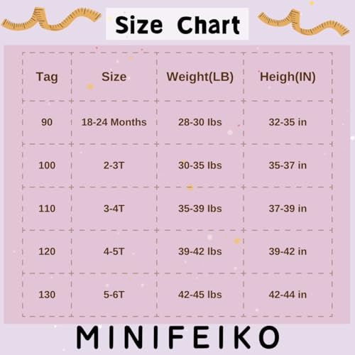 • Multi-size to Choose: MINIFEIKO prepared different size for your toddlers: 18-24 months, 2-3T, 3-4T, 4-5T, 5-6T. Please check the measurement chart on description before purchasing to choose the appropriate size based on your girl's body shape.