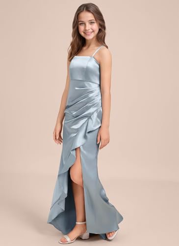 dideyttawl Sheath Junior Bridesmaid Dress with Slit Square Neck Stretch Satin Ruffles Flower Girl Dress 2521 2