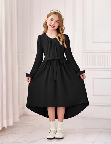Arshiner Girls Long Sleeve Dress Fashion High Low Flowy Swing Semi Formal Party Dresses with Belt 1