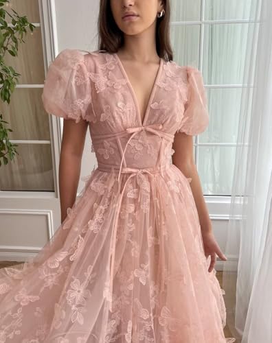 More information about Zepumen Puffy Sleeve Tulle Prom Dresses for Women 2025 3D Butterfly Long Applique Formal Evening Party Gowns