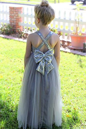 • The elegant bodice feature is made of sparkling sequins with Crossed Straps back. The back of the dress has a zipper closure and also decorated with a removable sequins mesh bow to make this dress more elegant.