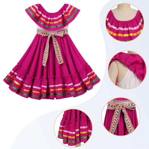 Mexican Dress for Girls Traditional Folk Ruffle Drape Outfit with Belt for Carnival, Halloween Party 6