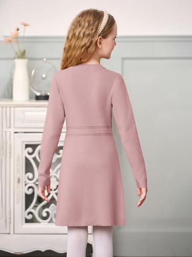 Haloumoning Girls Long Sleeve Sweater Dress Kids Casual Front Button A-Line Knit Fall Dresses 5-14 Years 6