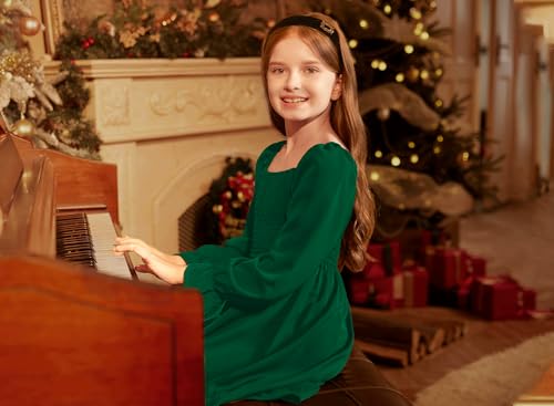 Girls Fall Ruffle Square Neck Dresses Long Puff Sleeve Smocked Elastic Cuffs Swing Midi Dress 6-14 Years 6