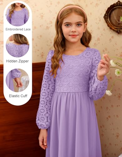• Design: Vintage & Formal Style, Floral Lace Top and Chiffon Skirt, Solid Color, Round Neck, Crochet Lace Puff Long Sleeve, High Waist, Pleated, A-line, Concealed Zipper At Back, Ankle Length. Perfect for toddler girls/ little girls/tween girls/ junior girls dress