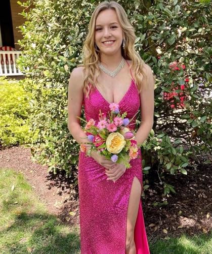 • Sequin Prom Dresses 2025,Sparkly Dresses for Women,Sequin Dresses for Women Formal,Mermaid Prom Dresses with Slit,Glitter Sequin Prom Dress,Formal Dress