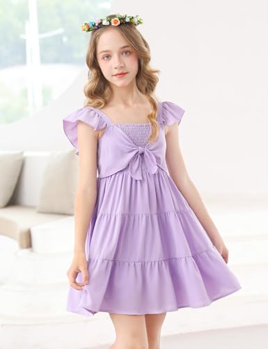 Ahegao 5-12T Girls Dress for Kids Square Neck Flutter Dresses Summer Dressy Frocks 4