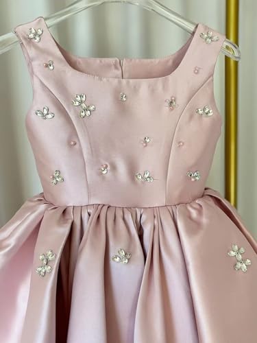 Satin Short Flower Girl Dress for Wedding Beaded A-line Pageant Dress for Kids Sleeveless Formal Gown 6