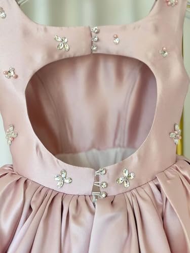 Satin Short Flower Girl Dress for Wedding Beaded A-line Pageant Dress for Kids Sleeveless Formal Gown 4