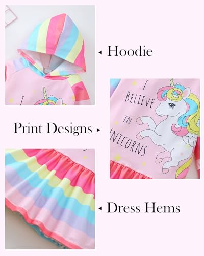 Toddler Girls Sweatshirt Dress: Long Sleeve A-Line Unicorn Hoodie Dresses for Fall Winter Christmas Party 2-7Y 5