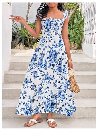 HOT ! Floerns Girl's Floral Ruffle Sleeveless Cami Dresses Slit Flare Hem Long Dress