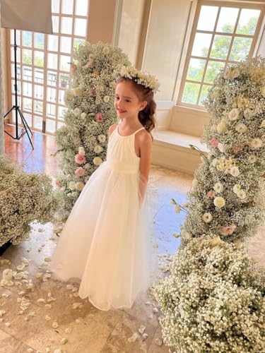 Girls Tulle Pageant Dresses Flower Girl O-Neck Wedding Party Spaghetti Strap First Communion Dress Tie Back 6