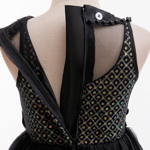 • Flower Girls Sequin Dress: Features layered tulle ruffles, sequin embroidered mesh, decorative back bow, and concealed zipper for magical princess vibes.