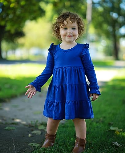 Vieille Toddler Girls Cotton Dress Long Sleeve Ruffle Dress Kids Solid Casual Clothes for 2-8 Years 6