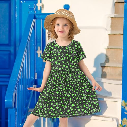 HOT ! Toddler Girls' Dresses Black Green Stars Short Sleeve Sundress 20859552