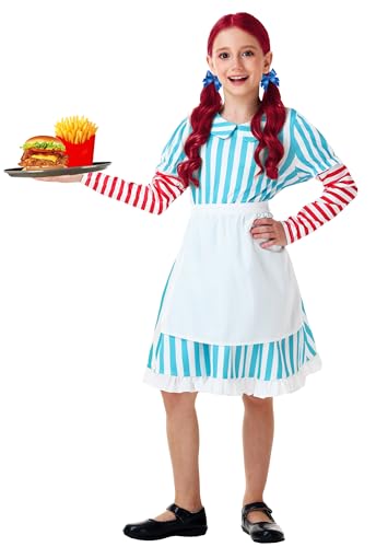 Deerose Girls Halloween Fast Food Dress with Apron Striped Puff Sleeve Dresses 3-14 Years 7
