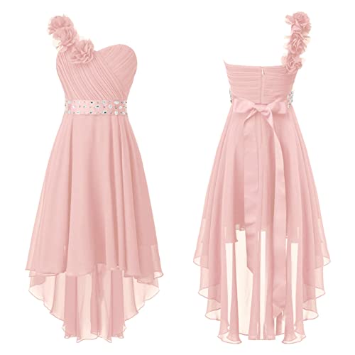 renvena Kids High Low Flower Girls Dress One Shoulder Sparkly Rhinestone Chiffon Bridesmaid Wedding Party Gown 4