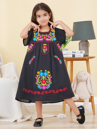 Mexican Dress for Girls Traditional Fiesta Kids Embroidered Dresses Girl Cinco De Mayo Clothes Vestido Mexicano 5