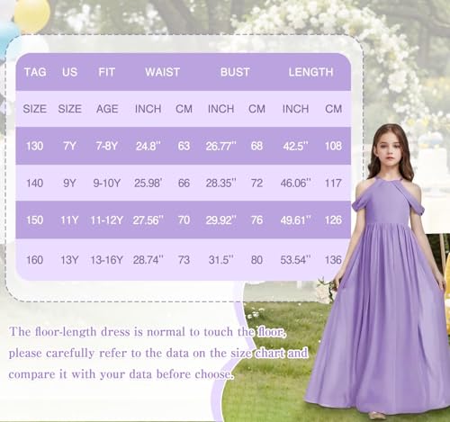 Girls A-Line Maxi Dress Junior Bridesmaid Flower Girl Dresses Girl Off-Shoulder Chiffon Dress for Wedding Pageant 6