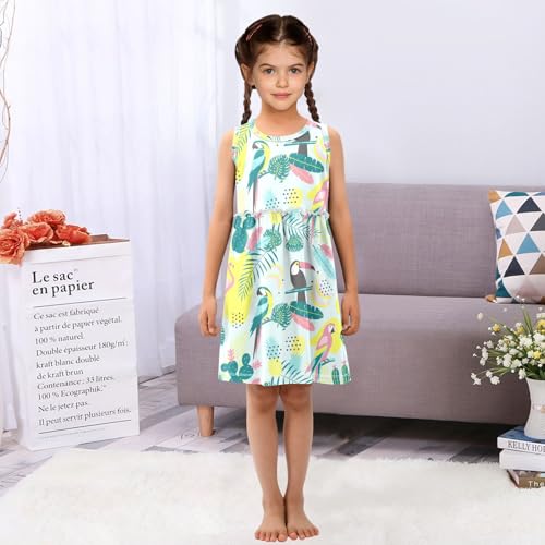 More information about Cactus Toucan Palm Girls' Dresses Toddler Summer Dress Cotton Sleeveless Dresses for Girls Sundress Outfit 2-8T