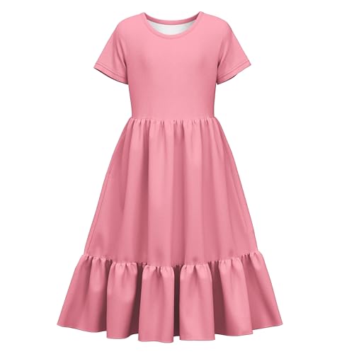 LQSZ Girls Maxi Summer Dress with Pocket Short Sleeve Spring Boho Long Sundress Casual School for Kids Size 3-12 Years 6