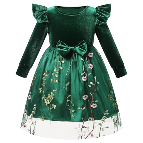 • DESIGNED: fashion long sleeves Velvet wine Red Dark green Ruffle christmas Fall Winter mommy and me dresses, Velvet Dark Green Red Burgundy matching dresses for mother and daughters christmas Holiday, Dark green Velvet mother daughter dresses matching set, Burgundy red mint green velvet mother daughter matching outfits to wear in fall Christmas theme, round neck, long sleeve with elastic ruffle cuffs, elastic waist and layered tulle floral embroidered ruffle hemline, makes you more elegance,