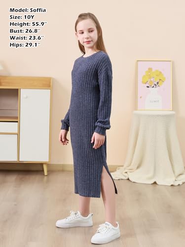 GORLYA Girls Long Sleeve Casual Sweater Rib Knit Split Straight Shift Midi Dress 6-16Y 6