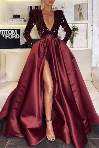 • Occasions: Long sleeve women's sequin prom dresses for women 2025 / satin silky long dresses / a line side split evening dresses / sequin glitter ball gowns / deep v neck plus size wedding dresses / women's pleated formal evening party dresses / sexy hot prom party dresses/ elegant gorgeous trailing long ball gowns