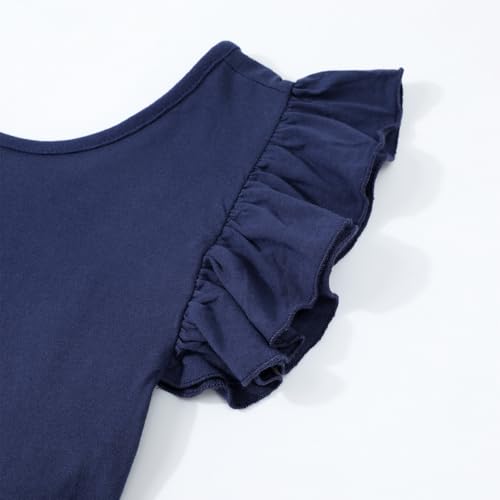 HILEELANG Toddler Girl Open Tie Back Dress Elegant Ruffle Short Flutter Sleeve Cotton Swing Twirly Sundress 7