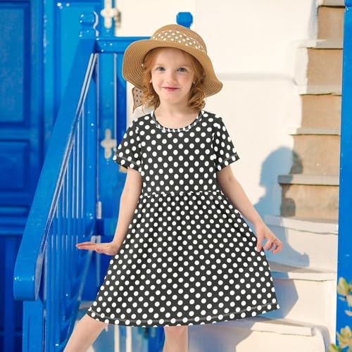 ALAZA Polka Dot Black White Girls Dress Short Sleeve Toddler Casual Dresses Summer Sundress 2-8T 2