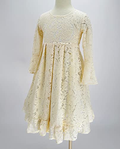 More information about Bow Dream Girls Lace Flower Dress Casual Crew Neck Floral A-Line Party Dress