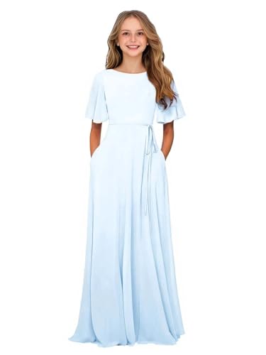 Chiffon Bridesmaid Dress for Juniors Short Sleeves Junior Dresses for Teen Girls with Pockets Girls Formal Dress 6